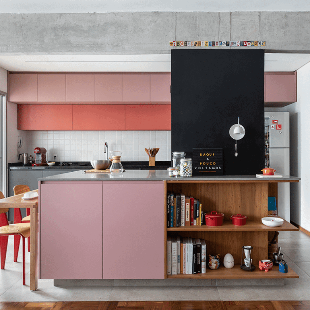 Las distribuciones en L están consideradas como uno de los diseños de cocina más buscados por su flexibilidad, funcionalidad y eficiencia, independientemente del estilo adoptado. Estos diseños utilizan dos paredes ortogonales para sostener todos los electrodomésticos y gabinetes, facilitando y minimizando la circulación, especialmente en casas pequeñas.