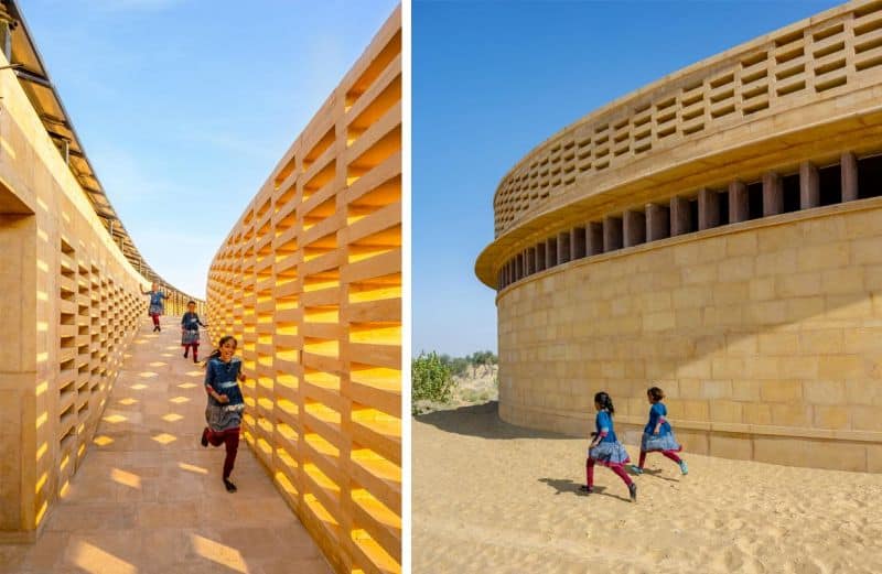 - Diana Kellogg Architects construye un escuela ovalada para niñas que emerge entre las dunas del desierto indio del Thar. Empoderamiento femenino y respeto por la tradición local definen este proyecto.