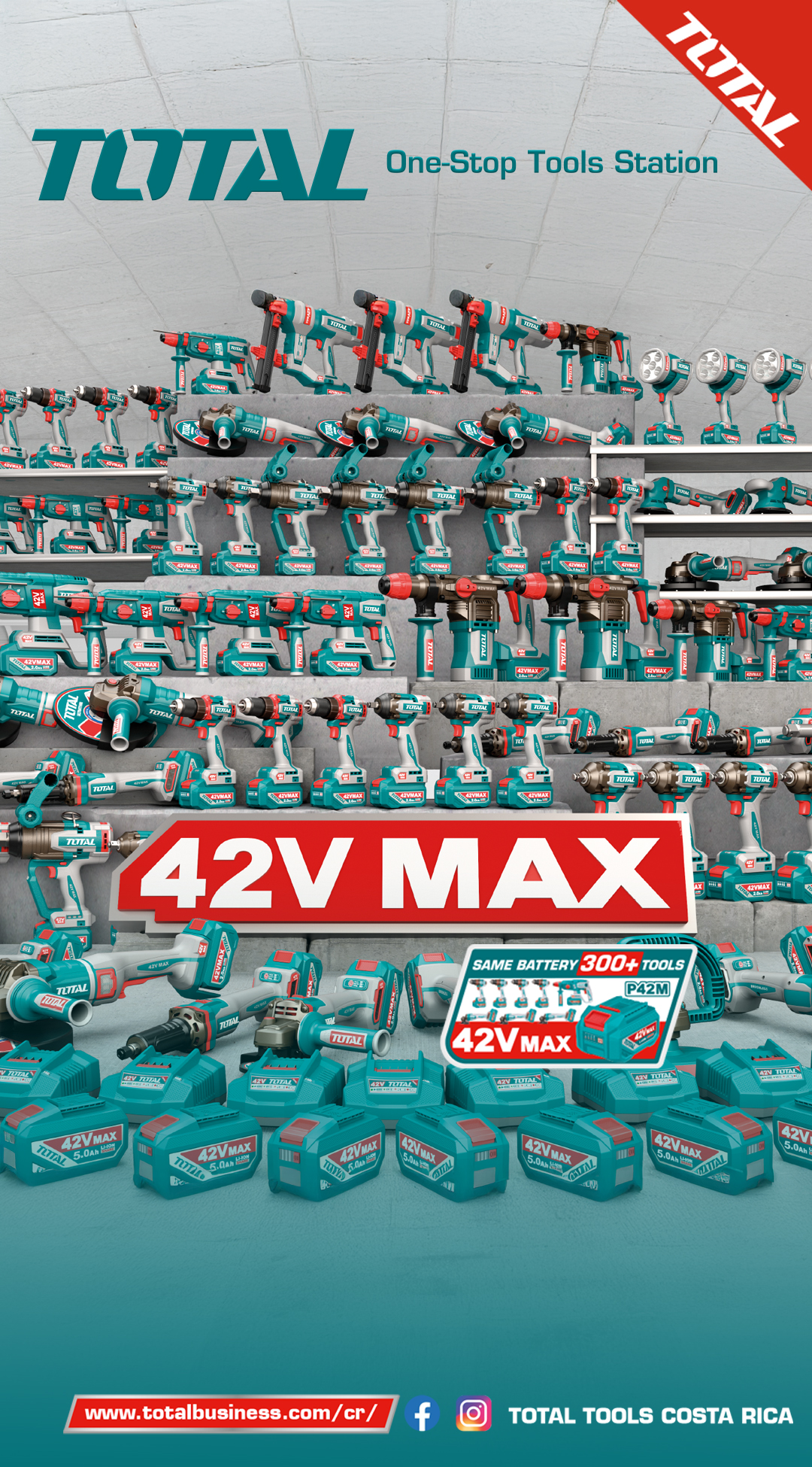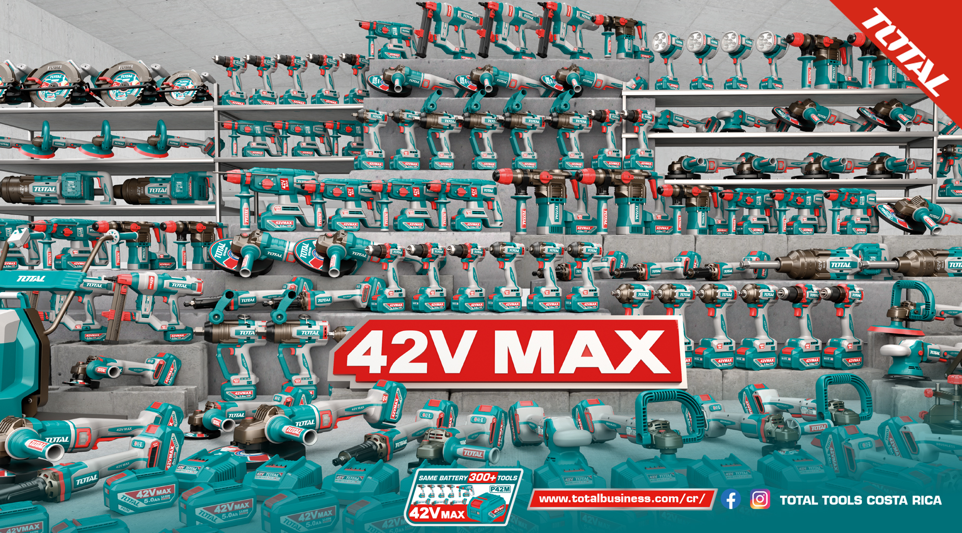 La nueva plataforma de herramientas inalámbricas de 42 Voltios Total presenta la ventaja que con la misma batería y el mismo cargador se pueden operar hasta 300 herramientas industriales.
