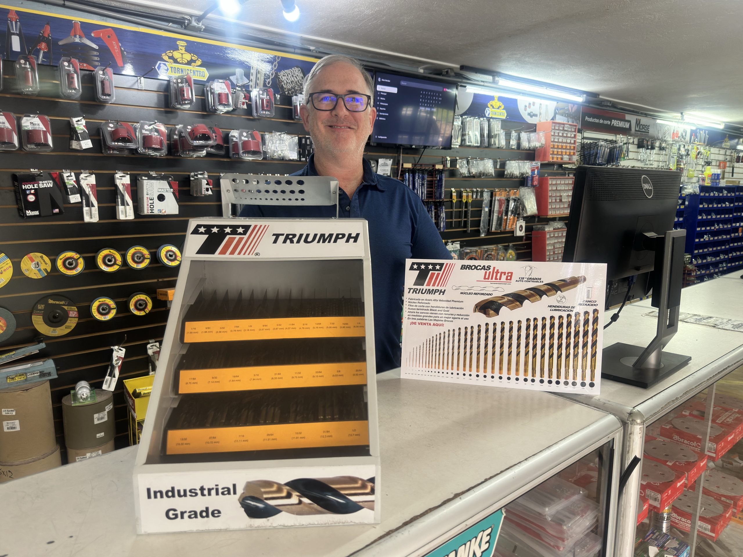 Sossin dice que todos los clientes que se apunten con Triumph van a recibir un exhibidor metálico, sumamente elegante y atractivo para exhibir todas las brocas para metal.